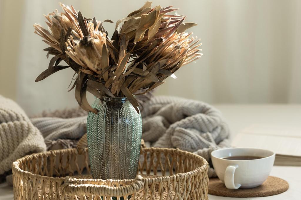 At night, reduce blue light, warm the room with textured shades, and spotlight art that repeats your key hues. Soft pools of light restore calm. Share your evening lighting ritual, and join our list for weekend makeover challenges.